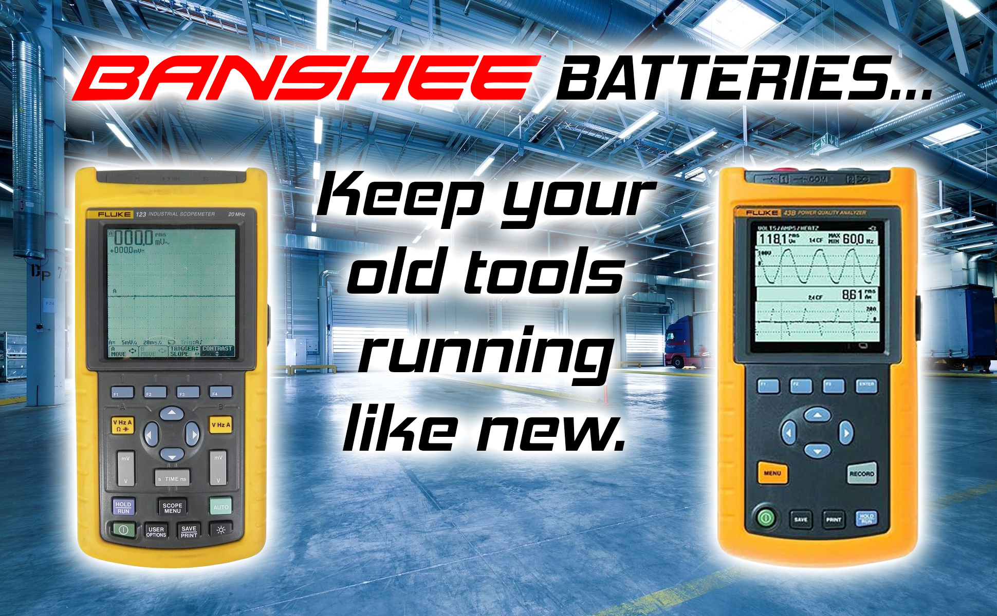 Introducing the Banshee 4.8V 3Ah Ni-MH Battery- your reliable powersource for your Fluke equipment, including Oscilloscopes, Power Quality Analyzers, & Industrial ScopeMeters.